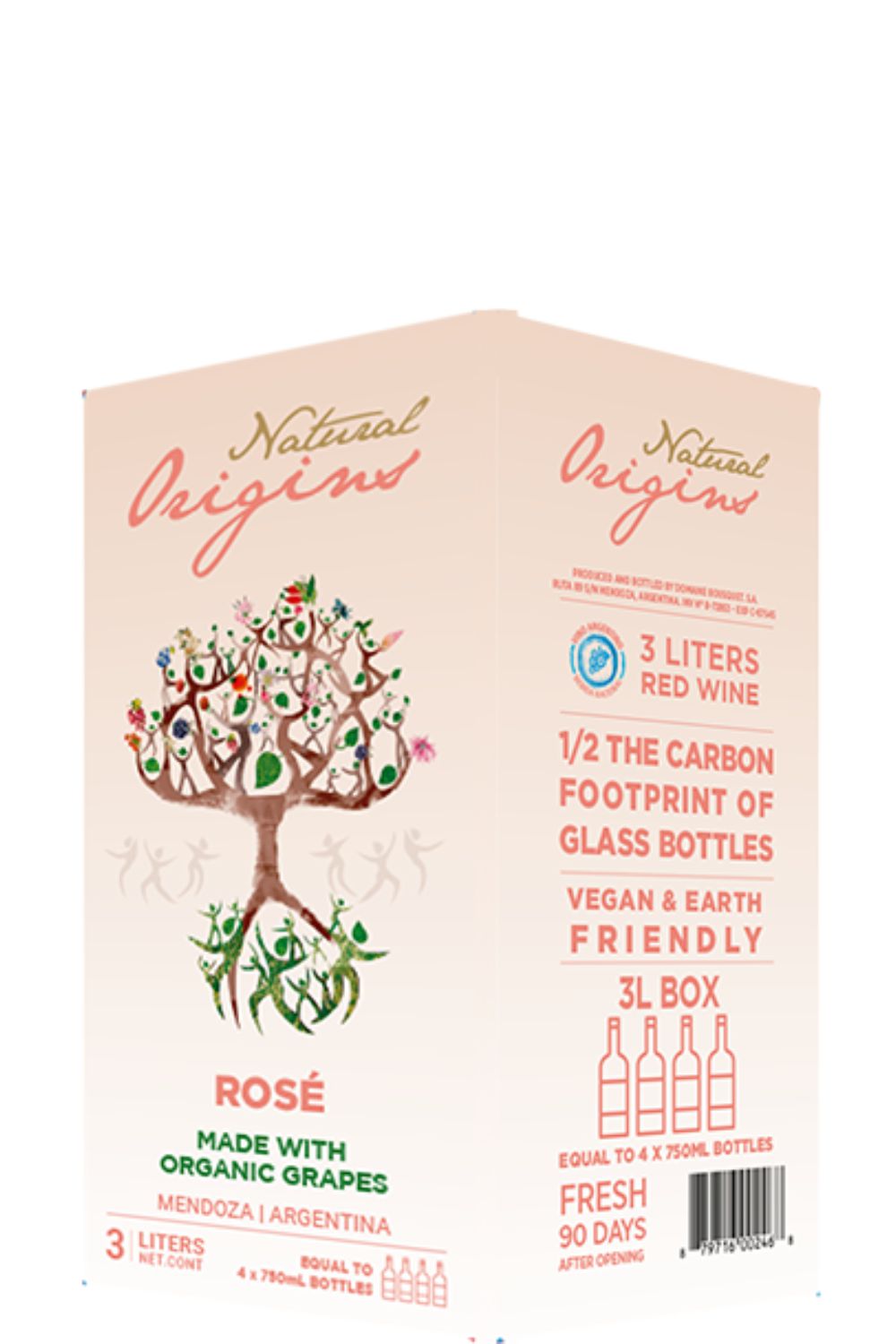 Natural Origins Organic Rosé is a blend of Pinot Noir, Syrah, and Pinot Grigio, made from organic Uco Valley grapes. Stainless-steel vinification, with no oak aging, prioritizes freshness and fruit expression. A light, expressive rosé designed to enjoy as an aperitif or alongside informal meals.