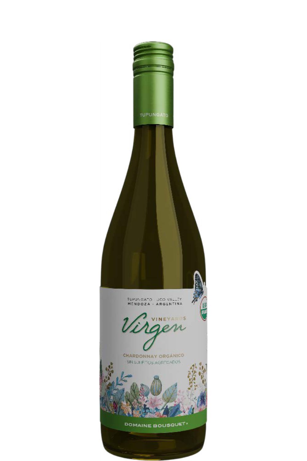 Virgen Chardonnay Orgánico es 100% Chardonnay, elaborado a partir de uvas orgánicas de Gualtallary cosechadas en distintas pasadas para combinar frescura natural e intensidad aromática.